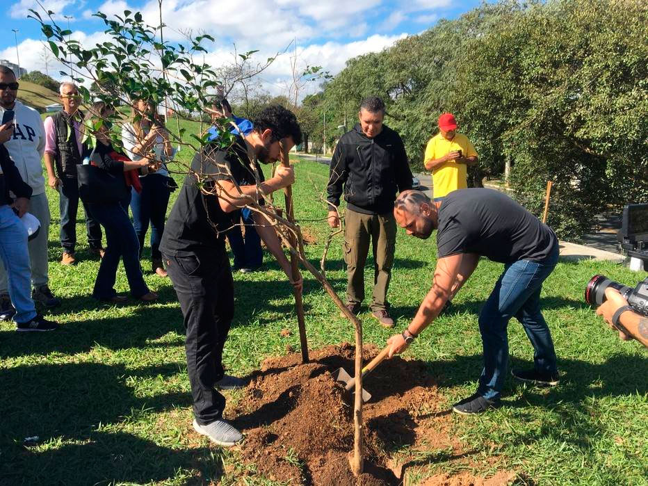 O prefeito Bruno Covas (PSDB) ajudou a plantar uma árvore no evento de entrega de obras de requalificação da Praça do Pôr do Sol. Foto: Gilberto Amendola/Estadão